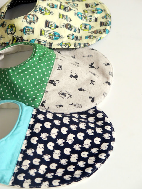 On a recent hunt for inspiration around blog land, I happened upon a particularly neat bib tutorial by Sew She Sews which I must share. ‘Bibs SCHMIBS!‘ you say? Well, its true: a bib is a bib and it probably won’t blow your socks off, but I love its mod shape and the mock patchwork allows for some seriously playful fabric combos. Clear and easy to navigate for those who still consider themselves in the ‘mostly-beginner-with-moments-of-brilliance’ category!