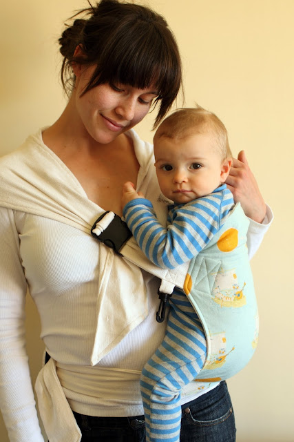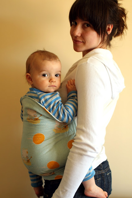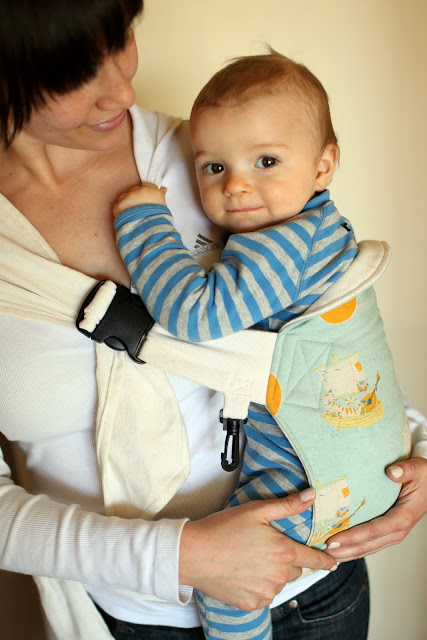 Thus, it was for cosmetic reasons alone that I fell in love with the Pea Pod carrier designed by Sascha of Piccoli Piselli (a must-see blog for boy sewing inspiration) and went out and bought the same Heather Ross fabric and contrast. I’m highly imaginative, you know. There were no pre-expectations for the Pea-pod to compare to beloved ergo and no hard feelings if it just turned into pure hip-candy.