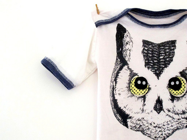 Short and sweet post today. I made this for Archie’s little mate, who just turned 4. He’s into owls and I happened to have this thrifted tee in the cut-up clothes pile. I only had small window of sewing time and needed a quickie of the best kind so I turned to the ever-faithful 90 minute shirt, also seen here and here and maybe here. It’s a real confidence builder too when your sewjo needs a boost. Though now its finished I really want to keep it. Is that possibly the lowest form of indian giving, the one in which you don’t even give the present? So I posted it right here where I won’t get away with my crime, since there’s a good chance our little friend’s mummy is reading this…