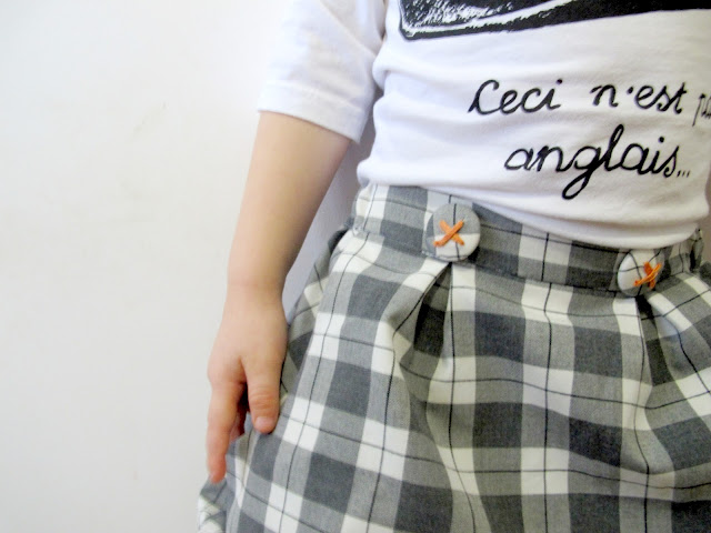 It’s okay, you can laugh. These pants are a little more ridiculous than I imagined. I was going for a woven version of day two’s Sarouels and went to town on the baggy crotch. I just figured the wider and lower that archway the better. They looks so cool hanging up. But on, the crotch creeps up and out and suddenly it’s all Senor Poofy Pants. Archie loves them, I assume because he gets a nice breeze down there. He’s such a dude in this outfit (t-shirt blogged about here) but I’m still unsure if these ‘pantaloons’ are ready for the public…